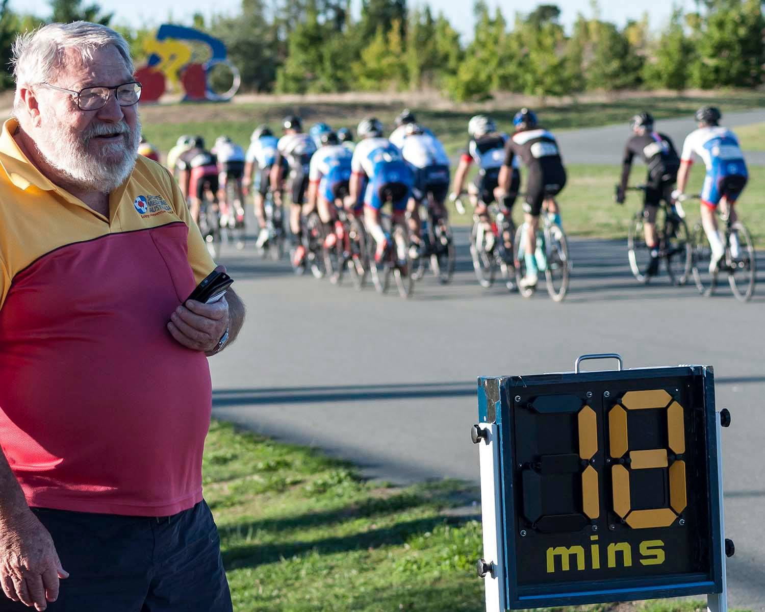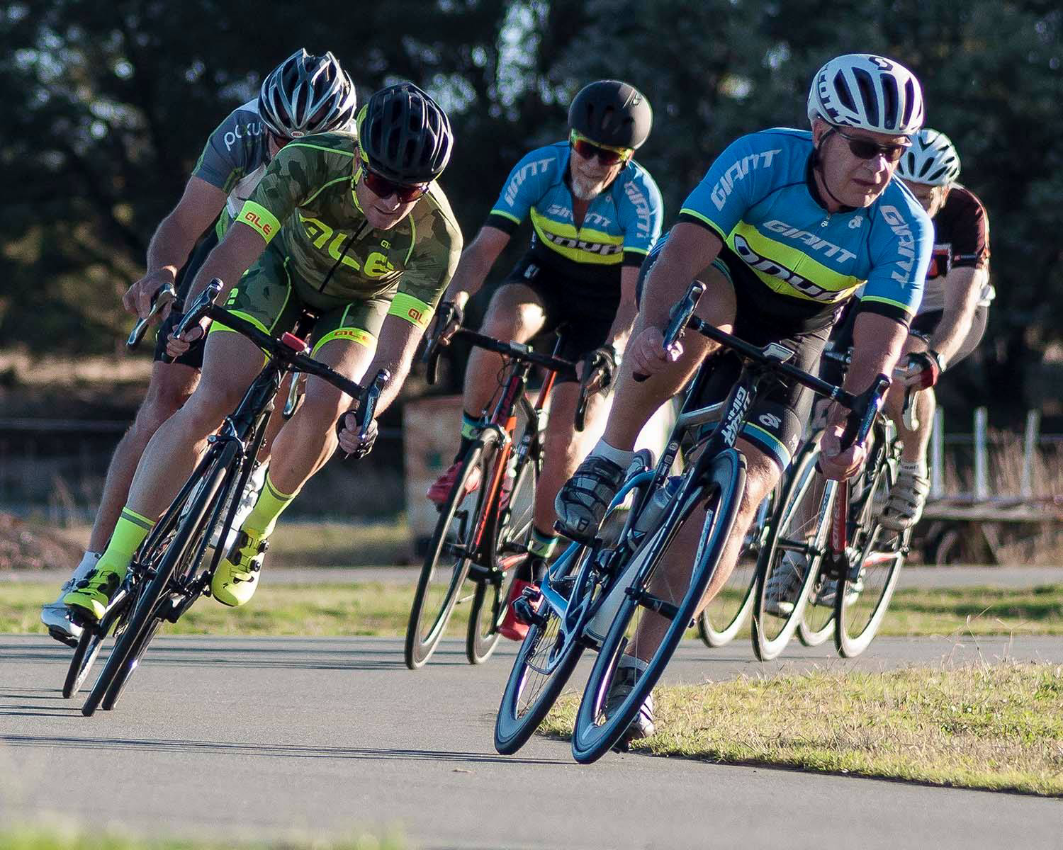 The race director’s instructions for C grade were to make the most of the last race of the season, and in particular for Ian Preston not to sit on the front and then be thrashed by the beefcakes in the last lap. It just happens that Onya Bike team management had provided the same instruction to Ian prior to the race. Acordingly C grade dawdled along with Ian patiently sitting in. Then with a few laps remaining Ian attacked and didn’t look back. Although the bunch picked up the pace in the last lap it wasn’t enough to catch a fast finishing Ian, who recorded his maiden C grade victory, and at last provided something for his most loyal fan to cheer about! John Thorn was the best of the rest followed by Brian Chugg.