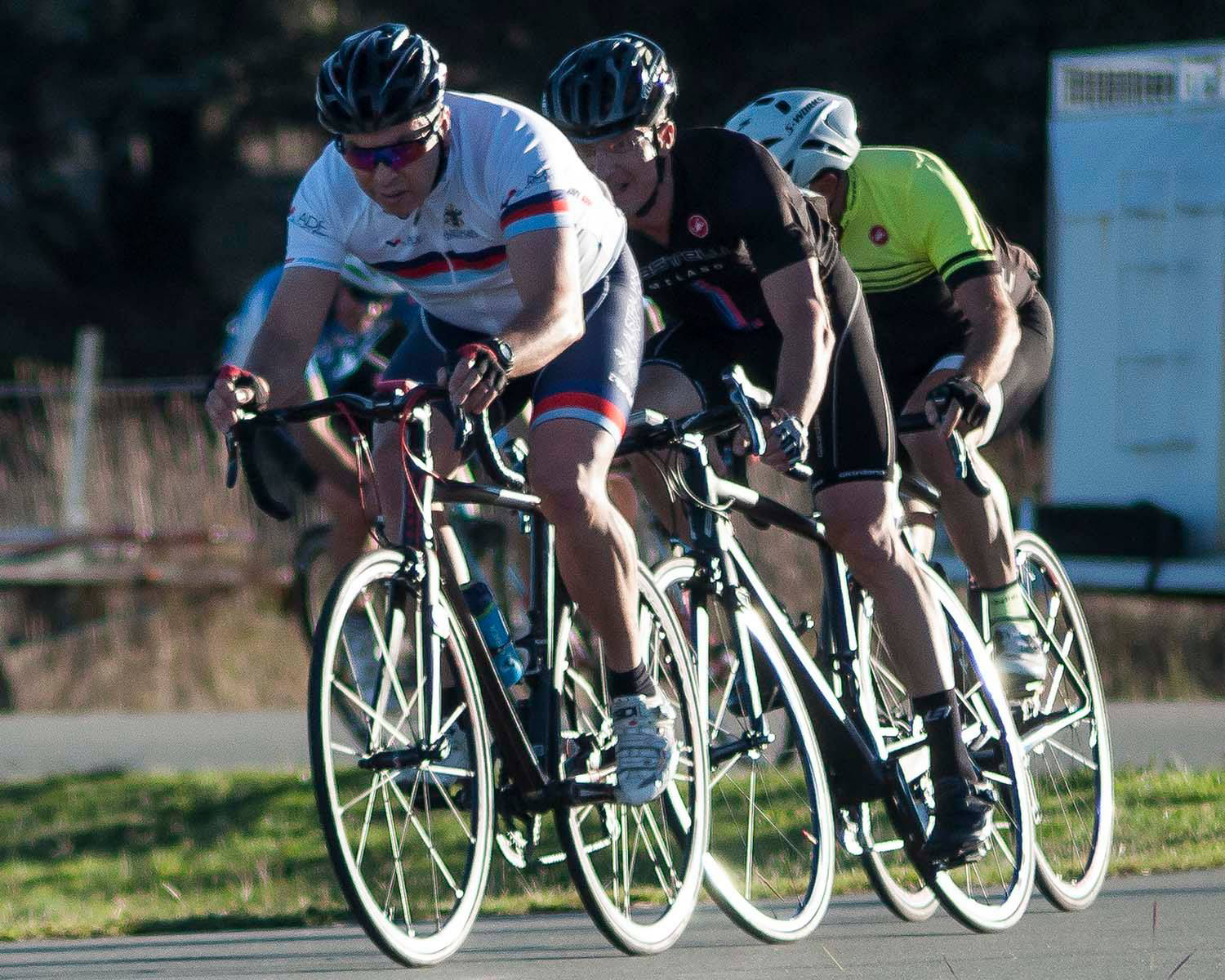 A grade had the most wind to contend with, and it was a direct headwind when going up the main straight. You would have thought that there would have been somewhere to hide in the bunch, but this was not the case as attacks from the likes of Ben Morrison meant that eventually the elastic broke, leaving an elite selection of Ben, Nick Stewart, Mark Harris, Paul Connor and Marc Vroomans. Ben once again showed why he’s been so dominant this season with a powerful display of sprinting to easily defeat Paul and Nick.