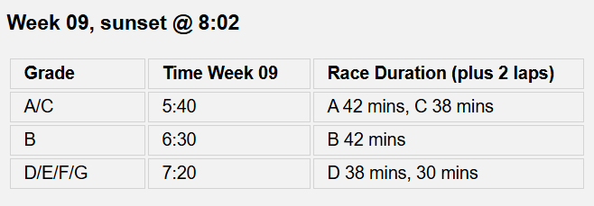 Please remember to check the RMS Calendar for race times each week now that we are back to rotating all 3 time slots.