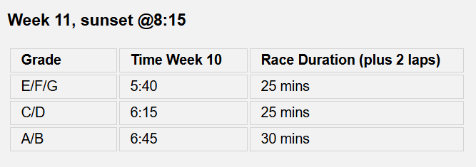 Please remember to check the RMS Calendar for race times each week now that we are back to rotating all 3 time slots.