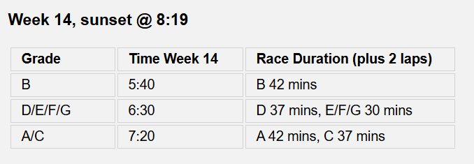 Please remember to check the RMS Calendar for race times each week now that we are back to rotating all 3 time slots.